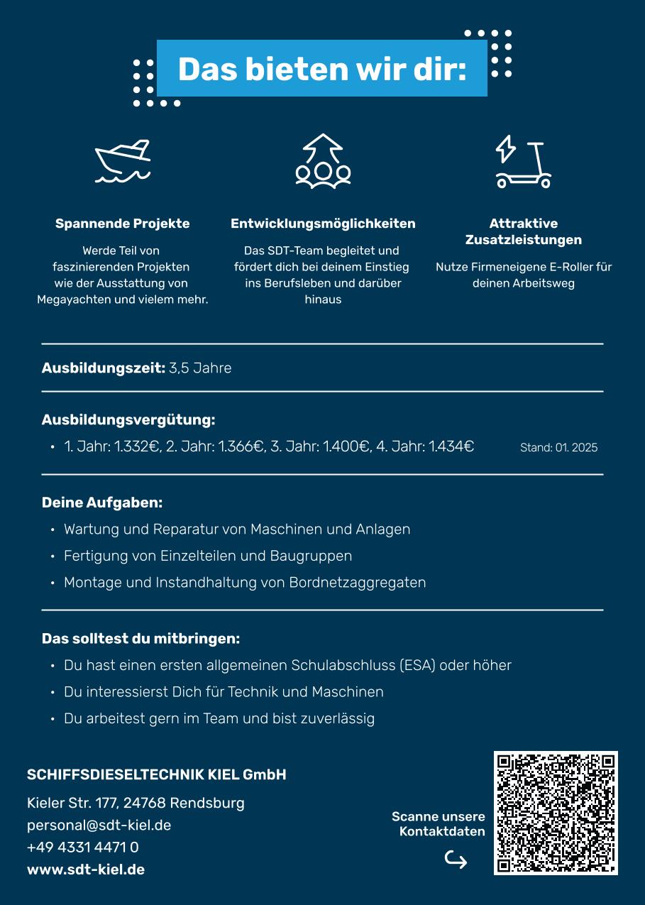 Grundsätzlich ist eine Ausbildung mit jedem Schulabschluss möglich. Genauso wichtig wie gute Zeugnisse sind für uns Motivation, Teamfähigkeit und Begeisterung für eine spannende, technisch geprägte Welt – die Welt der Aggregate und Motoren.